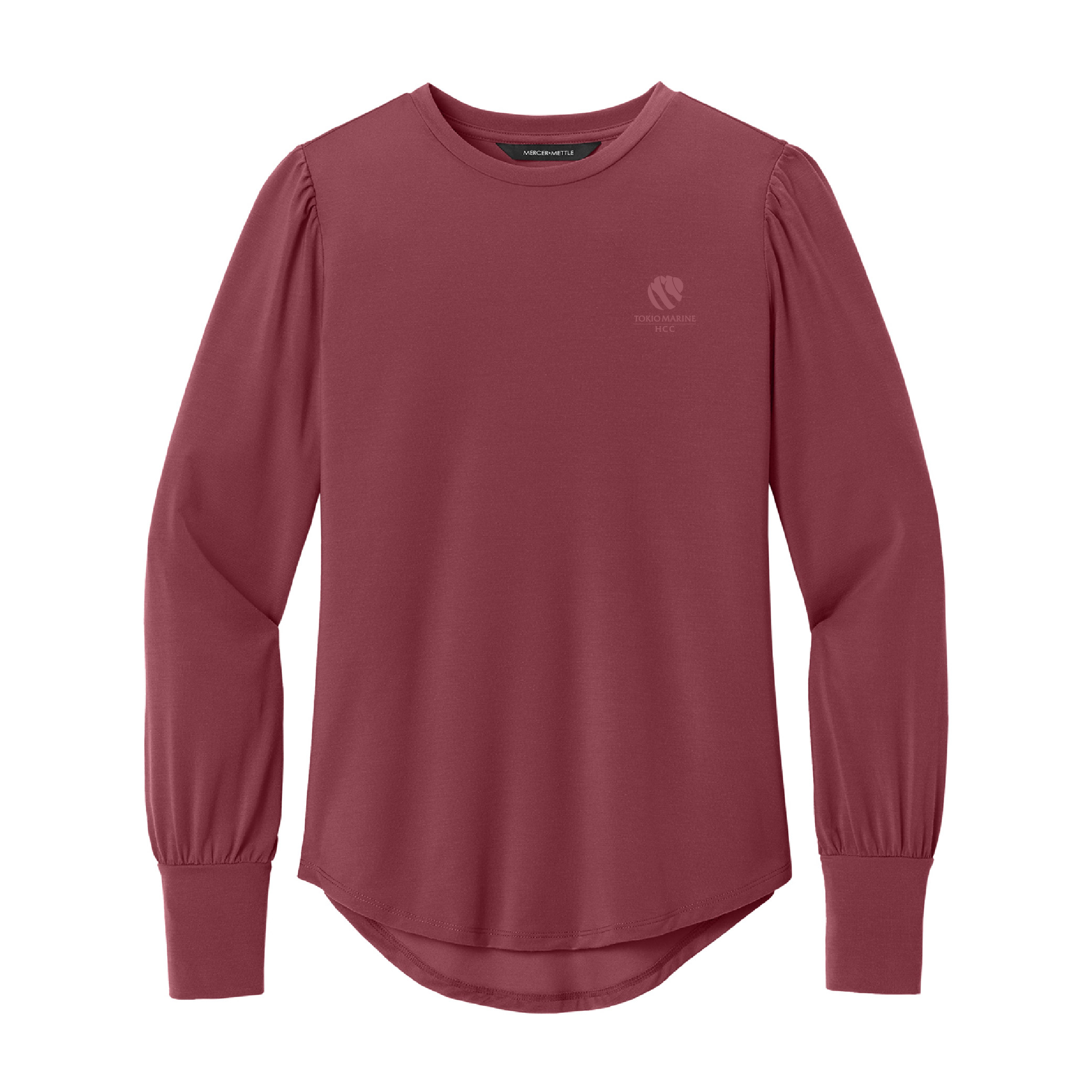 Delicately puffed blouson sleeves and a jewel neckline help create a feminine silhouette in this top that leans into a fashionable feel. Designed to be worn tucked or untucked, this flattering style is perfectly at ease in dressy or casual occasions.