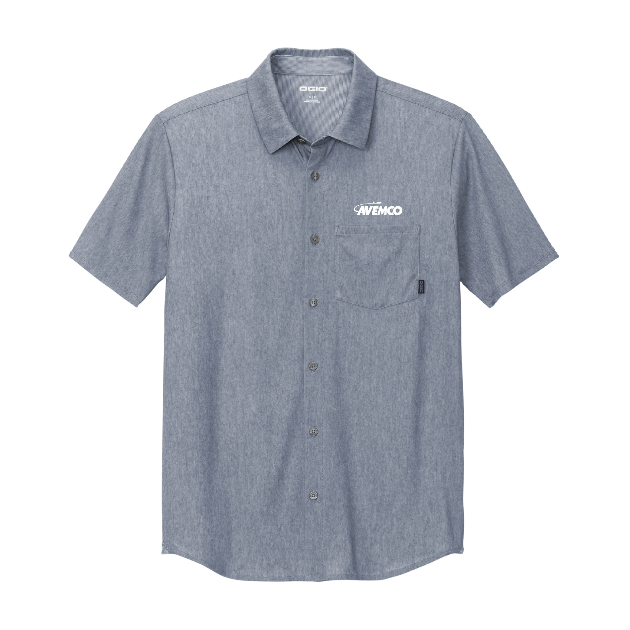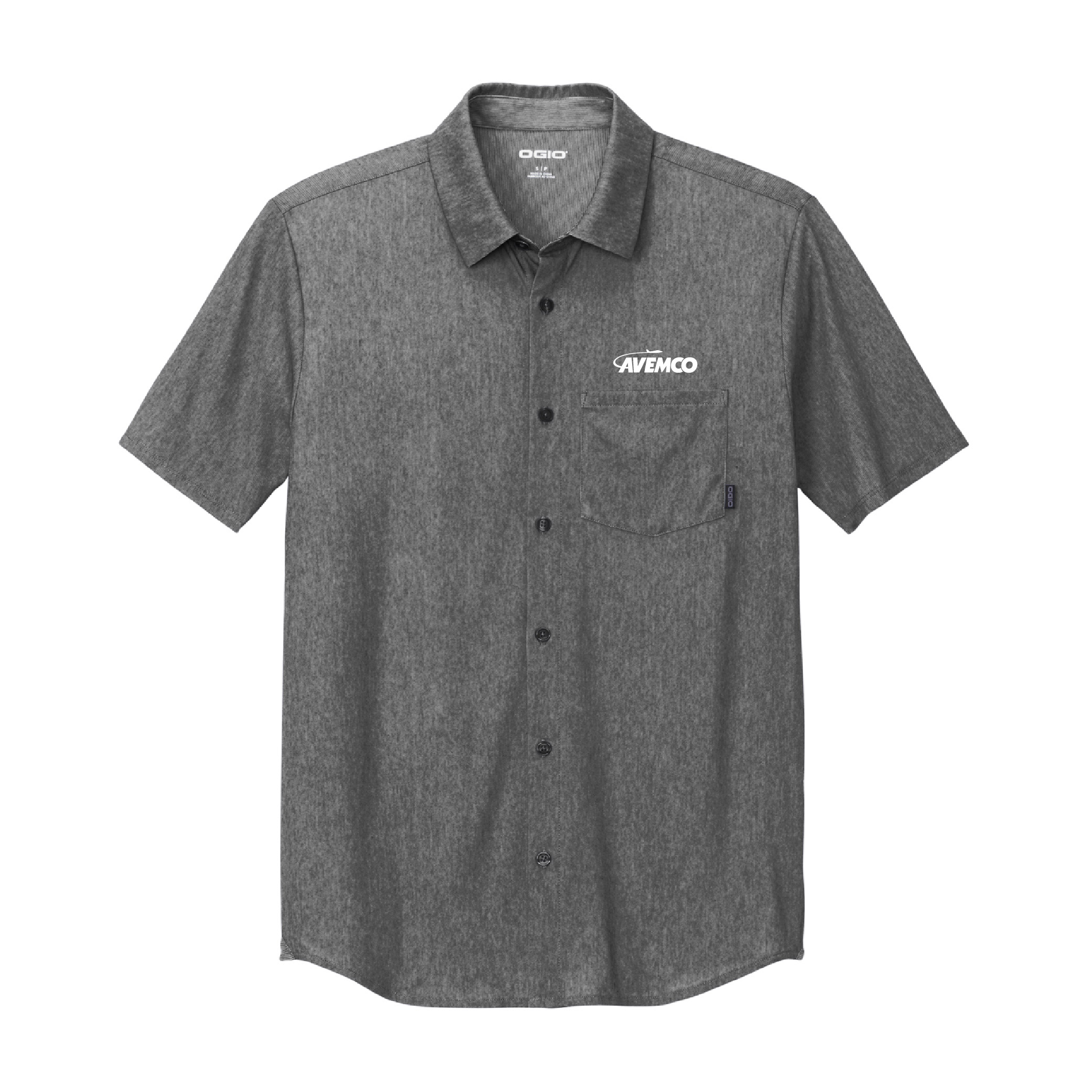 Extend your casual wardrobe with this OGIO knit shirt that has mechanical stretch. The heathered fabric has a subtle pinstripe effect that�s evident in the inside collar, locker loop and at the side seam gussets.